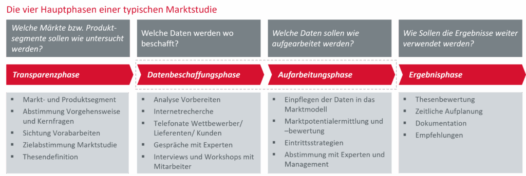 Der methodische Ablauf unserer Marktpotenzialstudie umfasst vier Phasen: