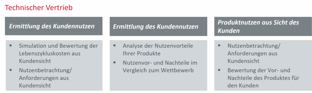 EU-weite Ausschreibungen sind Alltag für Hersteller von Investitionsgütern. Durch den Fokus auf kaufmännische und technische Bewertungskriterien geraten Kundennutzen und Möglichkeiten der Preisgestaltung oft ins Hintertreffen. Mit unserem speziellen Beratungsansatz für den Technischen Vertrieb zeigen wir Ihnen, wie Sie mit Mehrwerten für Ihre Kunden ein Umsatzplus erzielen.
