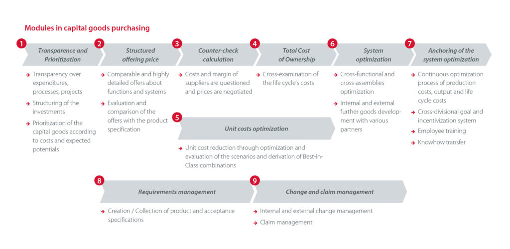 With each investment, a company determines its competitiveness for several years. Nevertheless, this often takes place in processes with little structure. Purchasing is usually involved due to the amount of the amounts but can often only negotiate an already fixed product. In some cases, the affected purchaser is even faced with a product that has already been ordered. Purchasing alone cannot change this situation, but there are optimization approaches.