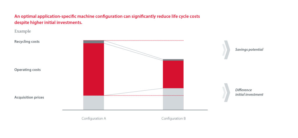 An application-specific optimal machine configuration can significantly reduce the life cycle costs despite higher initial investments (example)