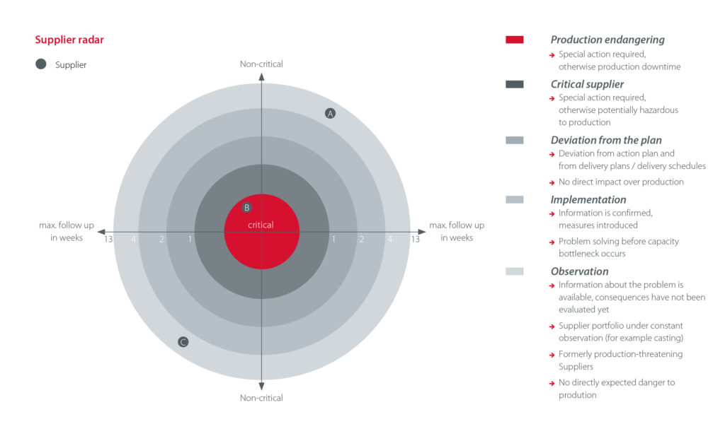This is especially true for companies that manufacture their products in highly customized variants, each with small quantities. Consequently, controlling the supply chain with up to several hundred suppliers is a highly complex task. The complete monitoring of all suppliers is simply not possible.